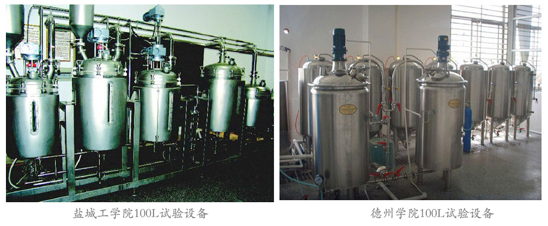- HLS系列學校啤酒實驗設備,主要包括糖化部分和發酵部分,二者通過綜合管道接通,其系統配置全面,設備技能先進,操作靈活,安全穩定,滿足大專院校啤酒生產、教學要求,也可以根據用戶需要進行設計。 糖化部分由糊化鍋、糖化鍋、過濾槽、煮沸鍋、漩沉槽和換熱器構成,并且各部件之間通過管道接通,糊化鍋和糖化鍋連接有原料輸入管道;發酵部分由6-8個發酵罐構成,發酵罐之間連接有洗滌殺菌管道、物料管道、冷媒回流管道和CO2管道。